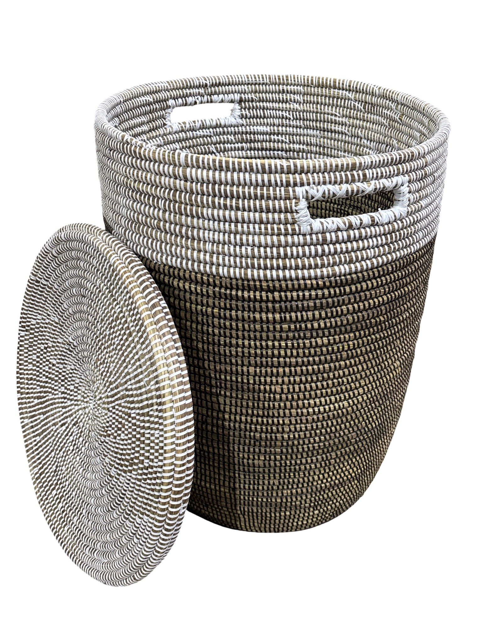 Deze mooie manden worden handmatig gemaakt door vrouwen uit Senegal van gedroogde rietstengels met gekleurd wol draad en aan elkaar vastgenaaid. Hierdoor ontstaan mooie kleurpatronen, er zijn verschillende vormen mandwerk, variërend van diverse maten, diepe en platte schalen, mandjes met of zonder deksel, diverse maten en vormen met/ zonder deksel.