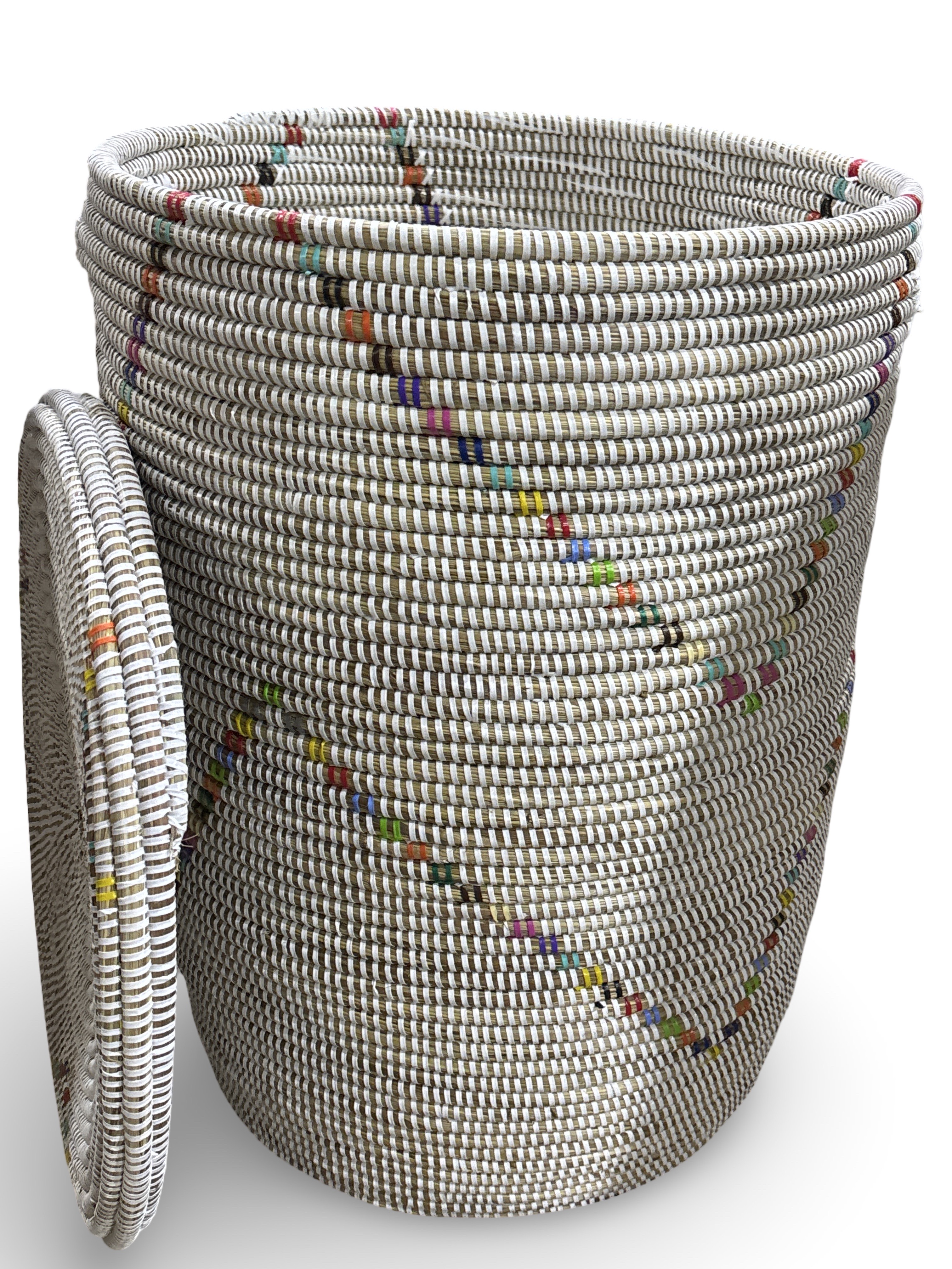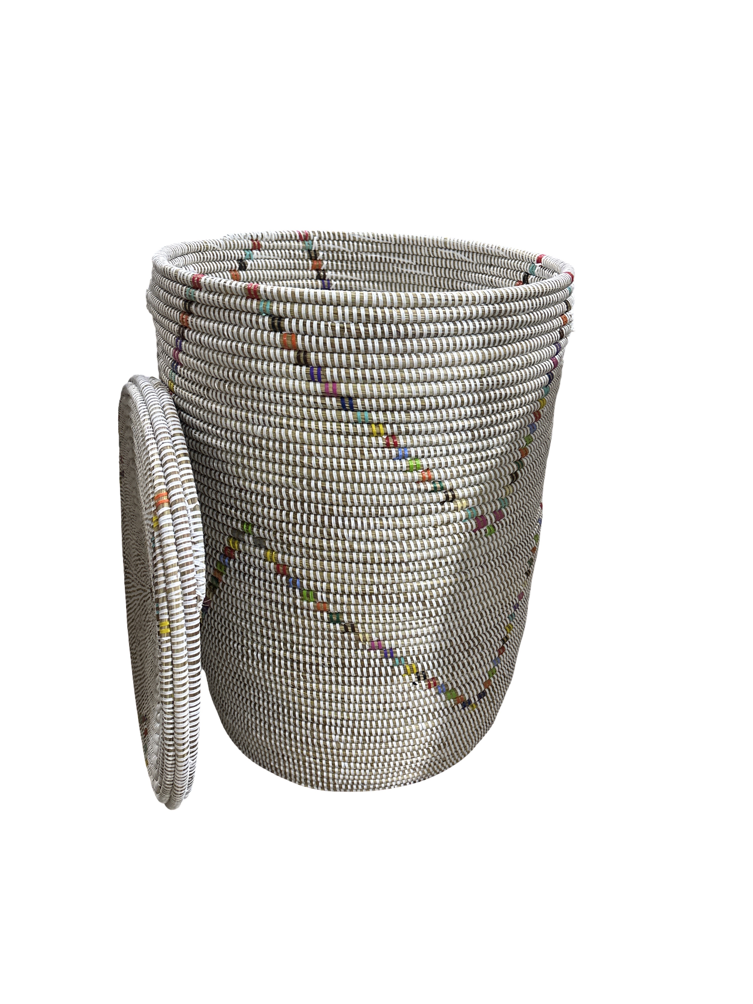 Deze mooie manden worden handmatig gemaakt door vrouwen uit Senegal van gedroogde rietstengels met gekleurd wol draad en aan elkaar vastgenaaid. Hierdoor ontstaan mooie kleurpatronen, er zijn verschillende vormen mandwerk, variërend van diverse maten, diepe en platte schalen, mandjes met of zonder deksel, diverse maten en vormen met/ zonder deksel.