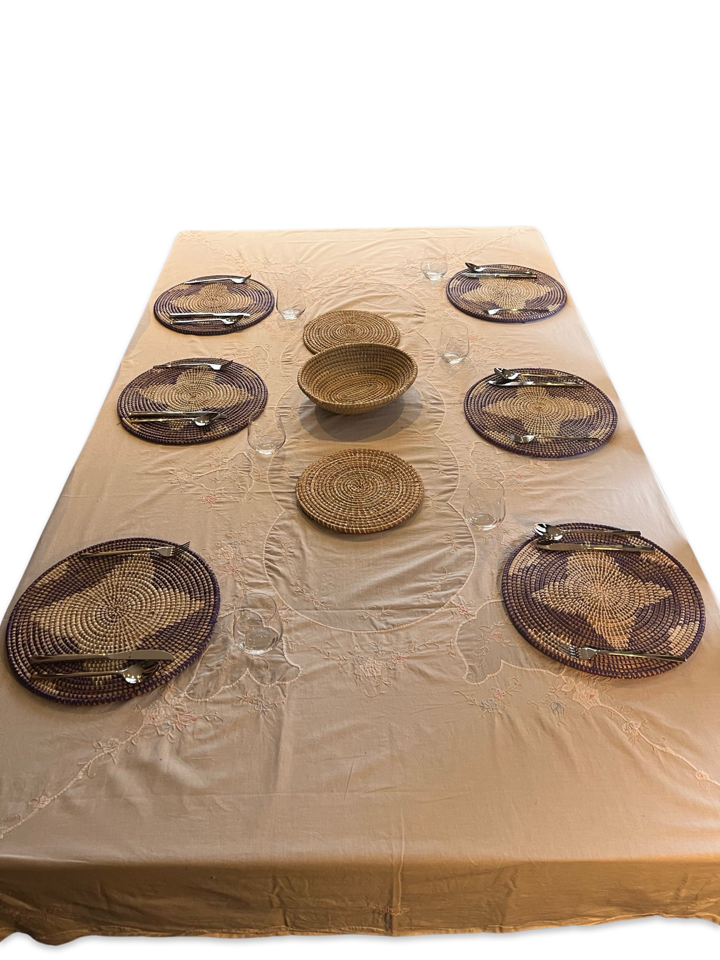 Deze mooie traditionele manden zijn handgemaakte door vrouwen uit Senegal van gedroogde rietstengels met wol draad, katoen of recycling plastic en aan elkaar gevlochten. Hierdoor ontstaan mooie kleurpatronen, er zijn verschillende vormen maatwerk, vormen en patronen. De Afrikaanse wasmand/ placemats zijn ideaal voor de wasgoed, speelgoed, kranten, planten en uiteraad onderzetters. Ze staan prachtig in de badkamer, woonkamer, slaapkamer, eettafel of in welke kamer dan ook. In diverse kleuren combinaties verkrijgbaar bij Dakar Fashion and Arts Nederland.