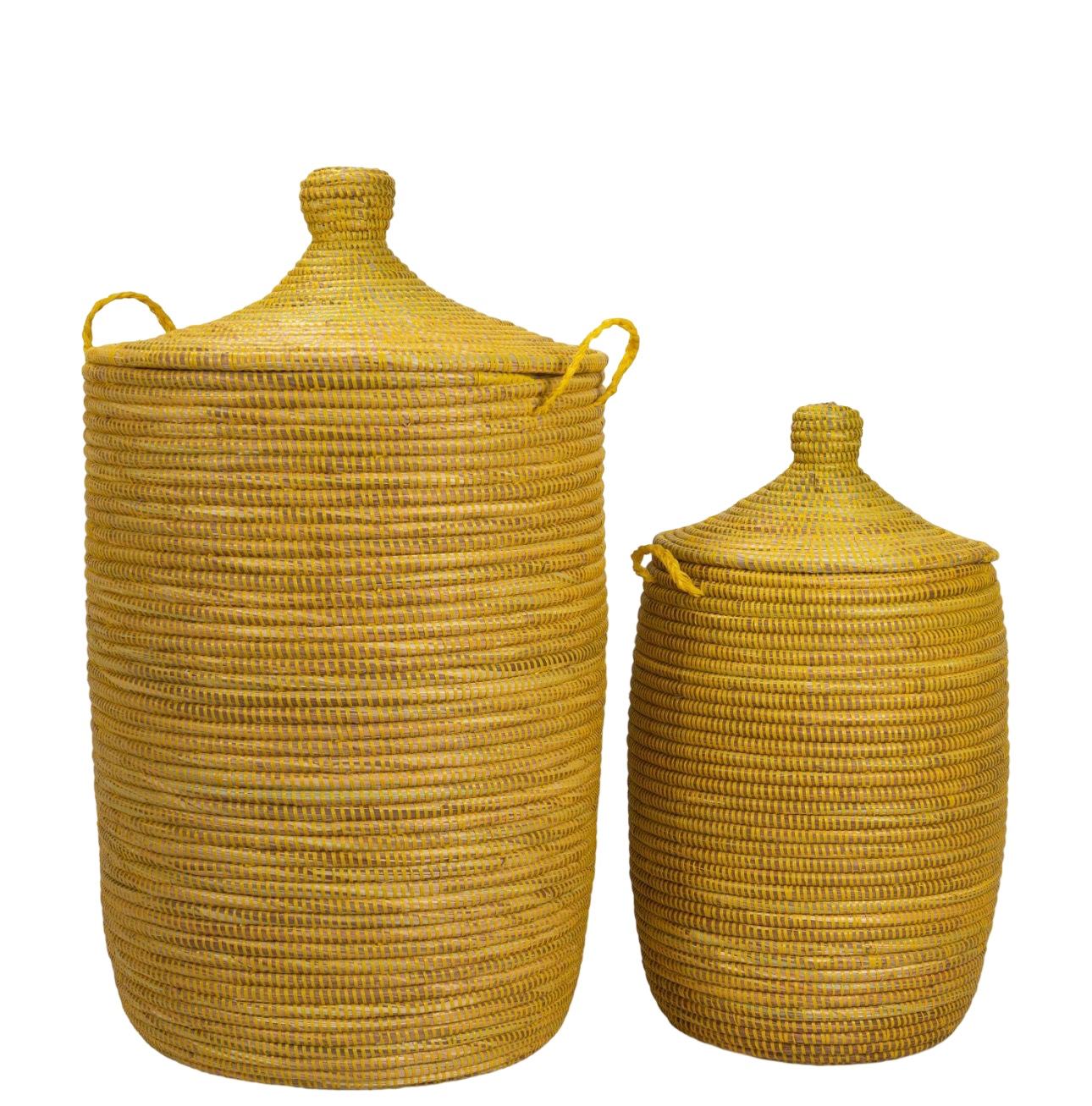Deze mooie traditionele manden zijn handgemaakte door vrouwen uit West Afrika van gedroogde rietstengels met wol draad/katoen en aan elkaar gevlochten. Hierdoor ontstaan mooie kleurpatronen, er zijn verschillende vormen maatwerk, variërend van maten, vormen en patronen. De Afrikaanse wasmand zijn ideaal voor de was, speelgoed, kranten en planten. Ze staan prachtig in de badkamer, woonkamer, slaapkamer of in welke kamer dan ook. Deze mooie manden en ook diverse Afrikaanse assortimenten zijn nu verkrijgbaar bij Dakar Fashion and Arts Nederland.